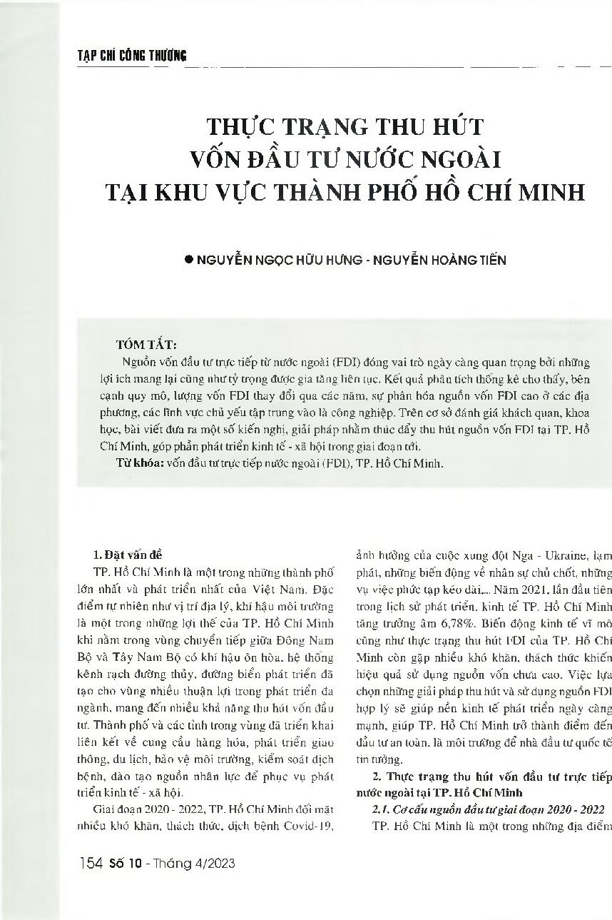 Thực trạng thu hút vốn đầu tư nước ngoài khu vực Thành phố Hồ Chí Minh