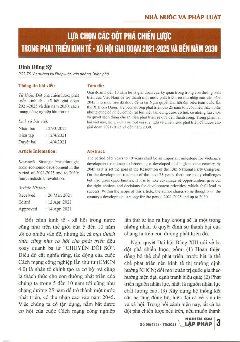 Lựa chọn các đột phá chiến lược trong phát triển kinh tế - xã hội giai đoạn 2021-2025 và đến năm 2030