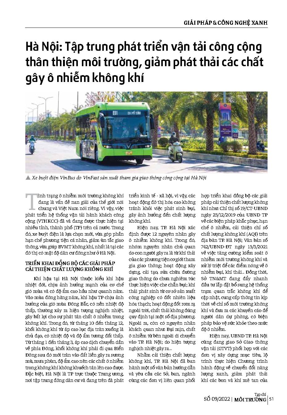 Hà Nội: Tập trung phát triển vận tải công cộng thân thiện môi trường, giảm phát thải các chất gây ô nhiễm không khí
