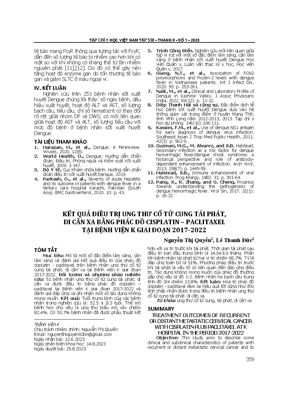 Kết quả điều trị ung thư cổ tử cung tái phát, di căn xa bằng phác đồ cisplatin – paclitaxel tại bệnh viện K giai đoạn 2017-2022 = Treatment outcomes of recurrent or distant metastatic cervical cancer with cisplatin plus paclitaxel at K hospital in the per