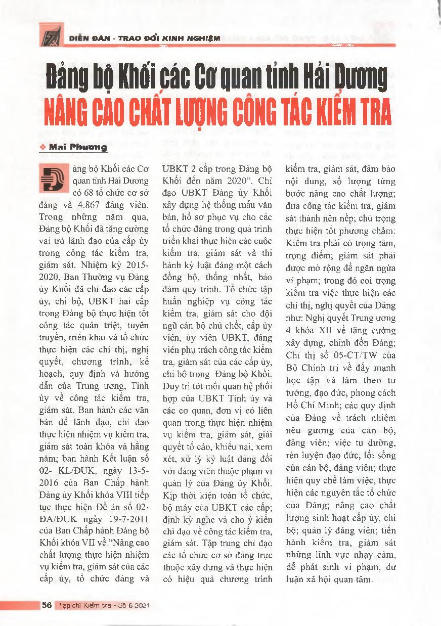 Đảng bộ Khối các Cơ quan tỉnh Hải Dương nâng cao chất lượng công tác kiểm tra