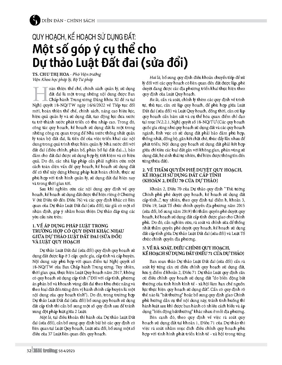 Quy hoạch, kế hoạch sử dụng đất: Một số góp ý cụ thể cho Dự thảo Luật Đất đai (sửa đổi)