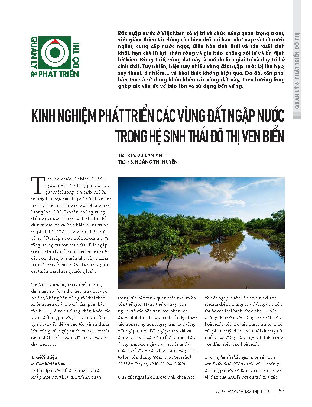 Kinh nghiệm phát triển các vùng đất ngập nước trong hệ sinh thái đô thị ven biển