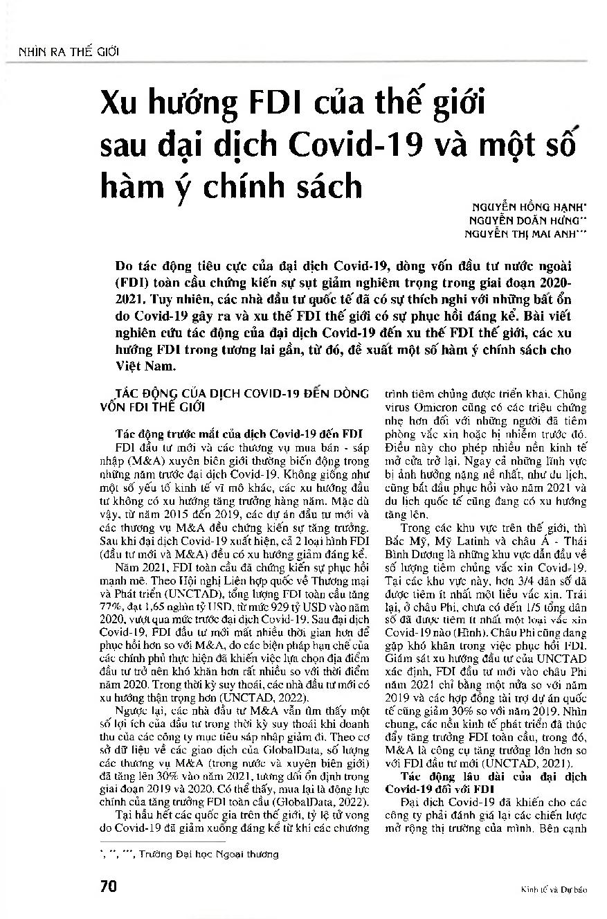 Xu hướng FDI của thế giới sau đại dịch Covid-19 và một số hàm ý chính sách