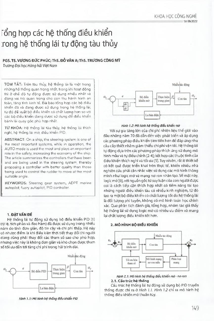 Tổng hợp các hệ thống điều khiển trong hệ thống lái tự động tàu thủy = Summary of the control systems in the marine autopilot