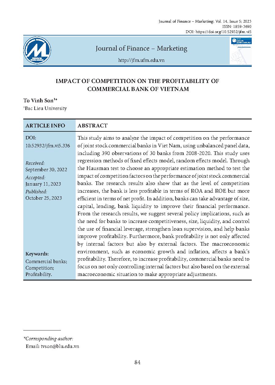 Tác động của cạnh tranh đến khả năng sinh lời của ngân hàng thương mại Việt Nam = Impact of competition on the profitability of commercial bank of Vietnam