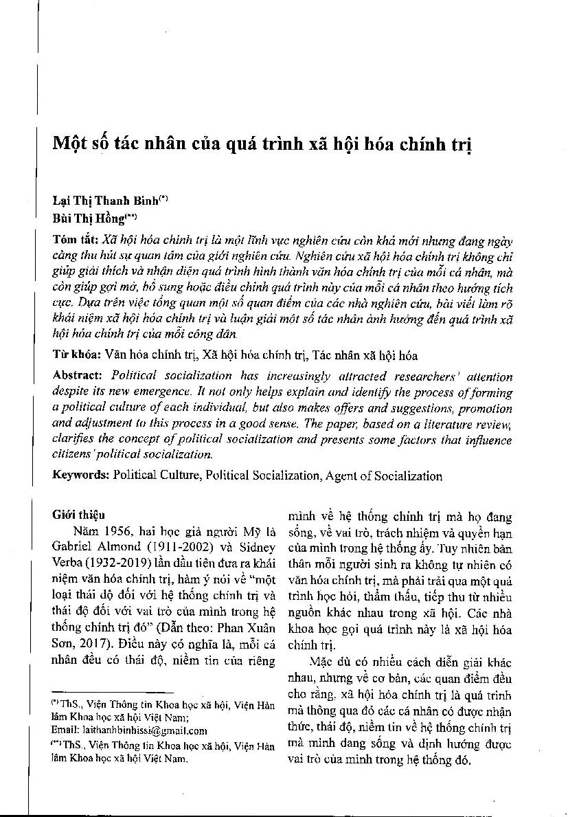 Một số tác nhân của quá trình xã hội hóa chính trị = Some agents of the political socialization process