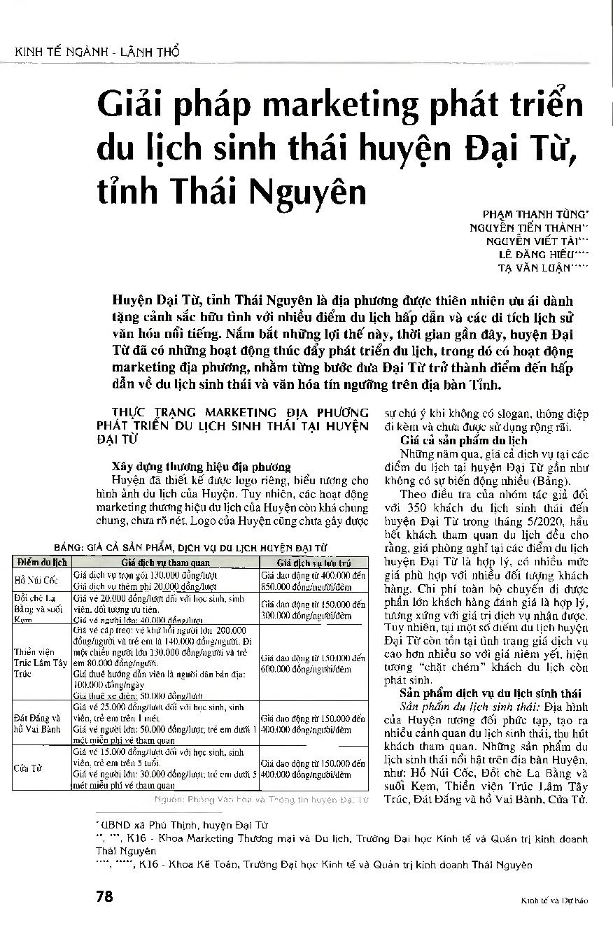 Giải pháp marketing phát triển du lịch sinh thái huyện Đại Từ, tỉnh Thái Nguyên