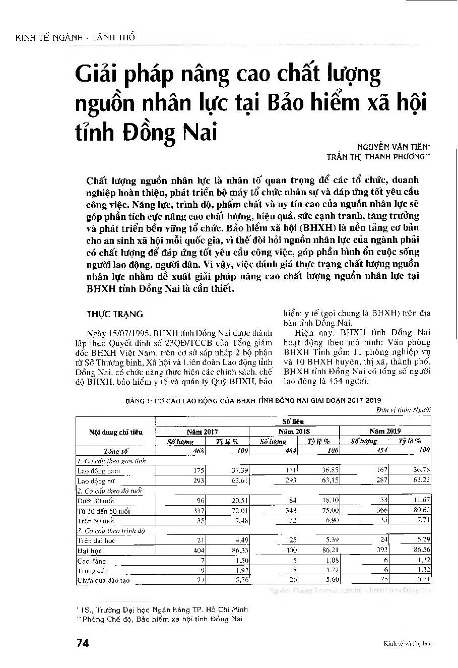 Giải pháp nâng cao chất lượng nguồn nhân lực tại Bảo hiểm xã hội tỉnh Đồng Nai