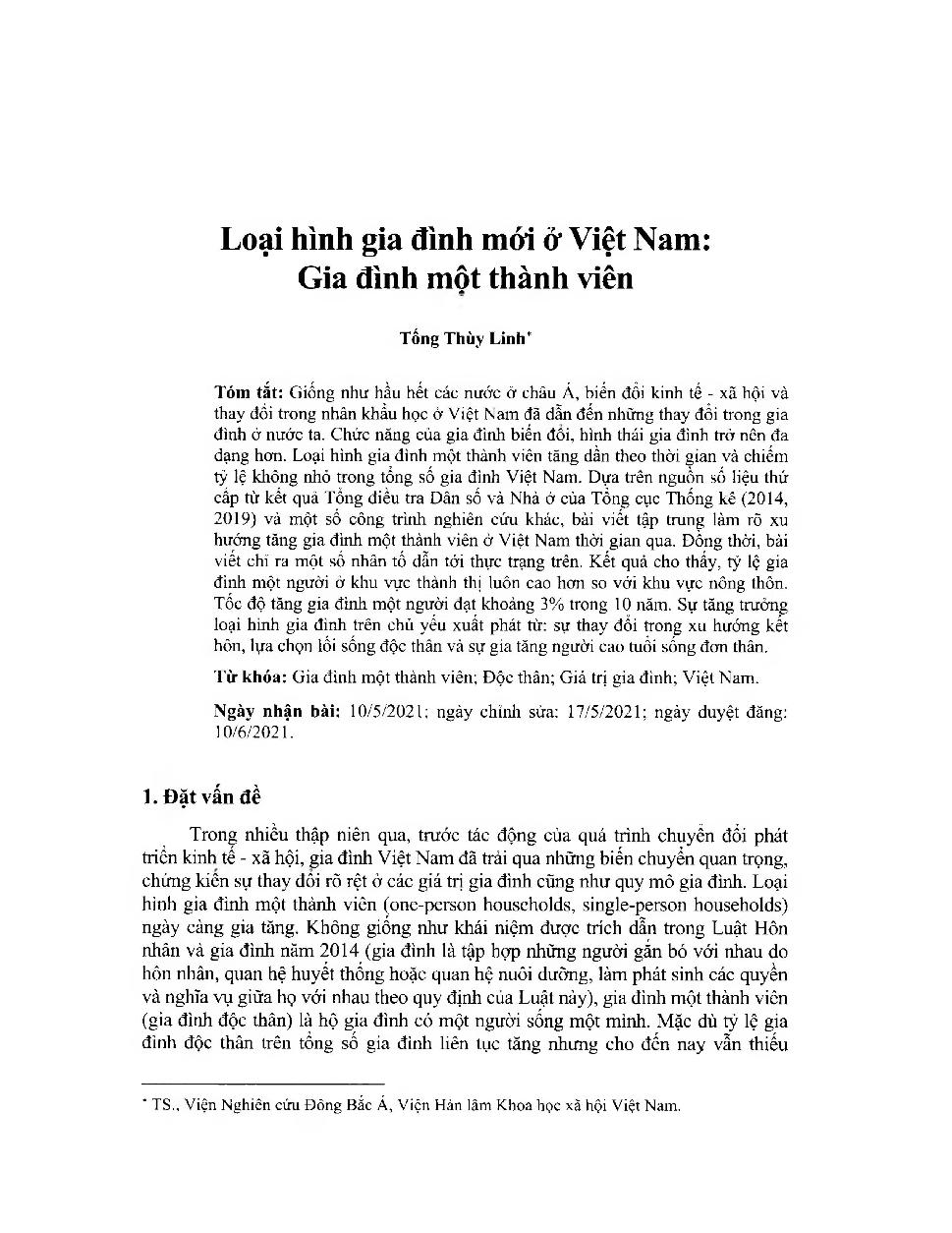 Loại hình gia đình mới ờ Việt Nam: Gia đình một thành viên