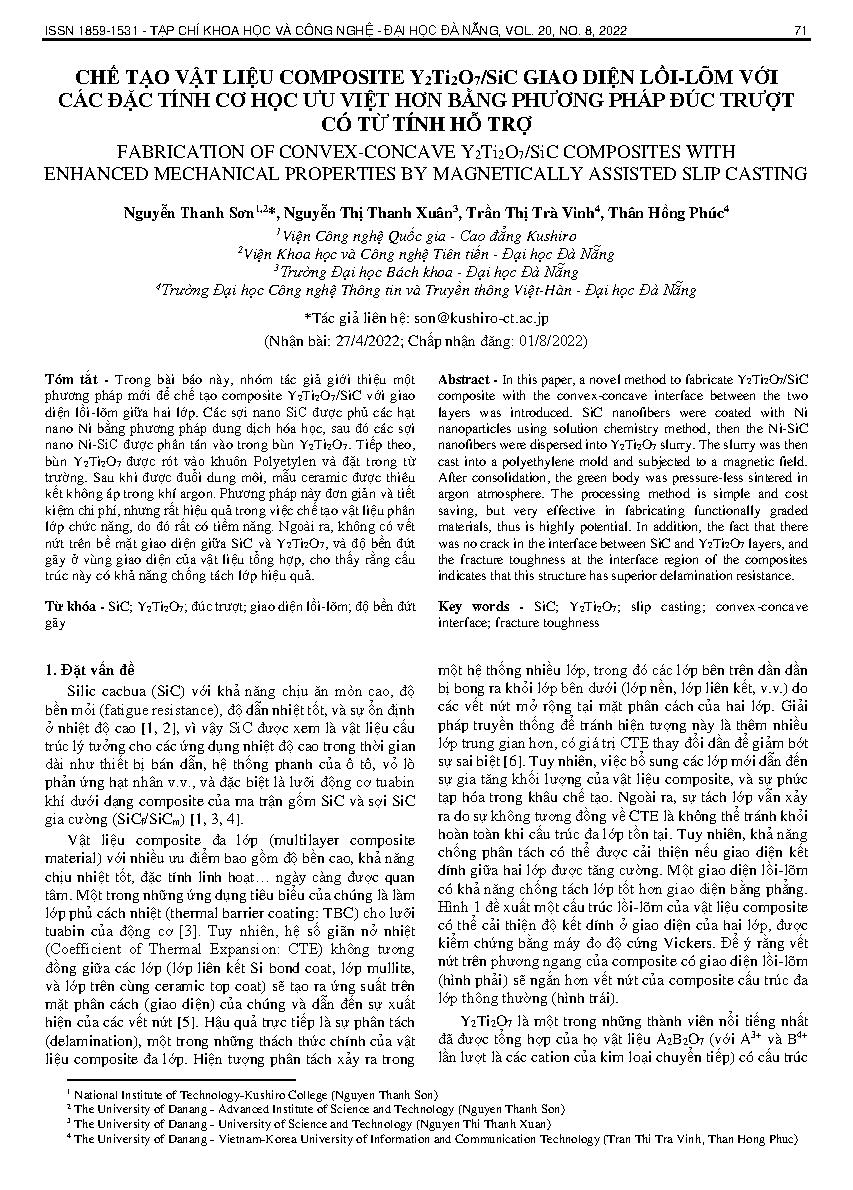 Chế tạo vật liệu composite y2ti2o7/sic giao diện lồi-lõm với các đặc tính cơ học ưu việt hơn bằng phương pháp đúc trượt có từ tính hỗ trợ = Fabrication of convex-concave y2ti2o7/sic composites with enhanced mechanical properties by magnetically assisted s