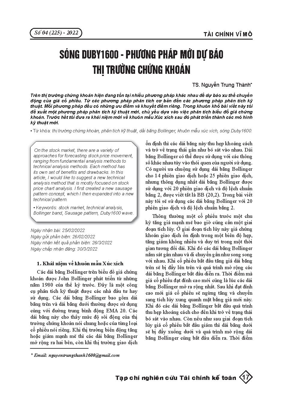 Sóng Duby1600 - Phương pháp mới dự báo thị trường chứng khoán = The Duby1600 wave - New method of the stock market forecast.