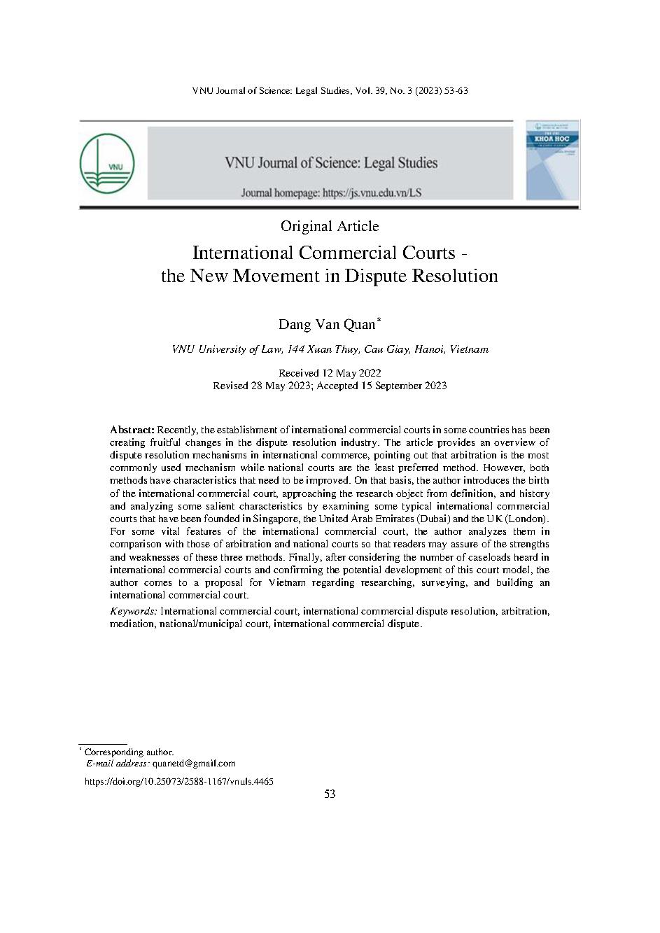 Tòa án Thương mại Quốc tế - bước chuyển mới trong giải quyết tranh chấp thương mại quốc tế = International commercial courts - the new movement in dispute resolution