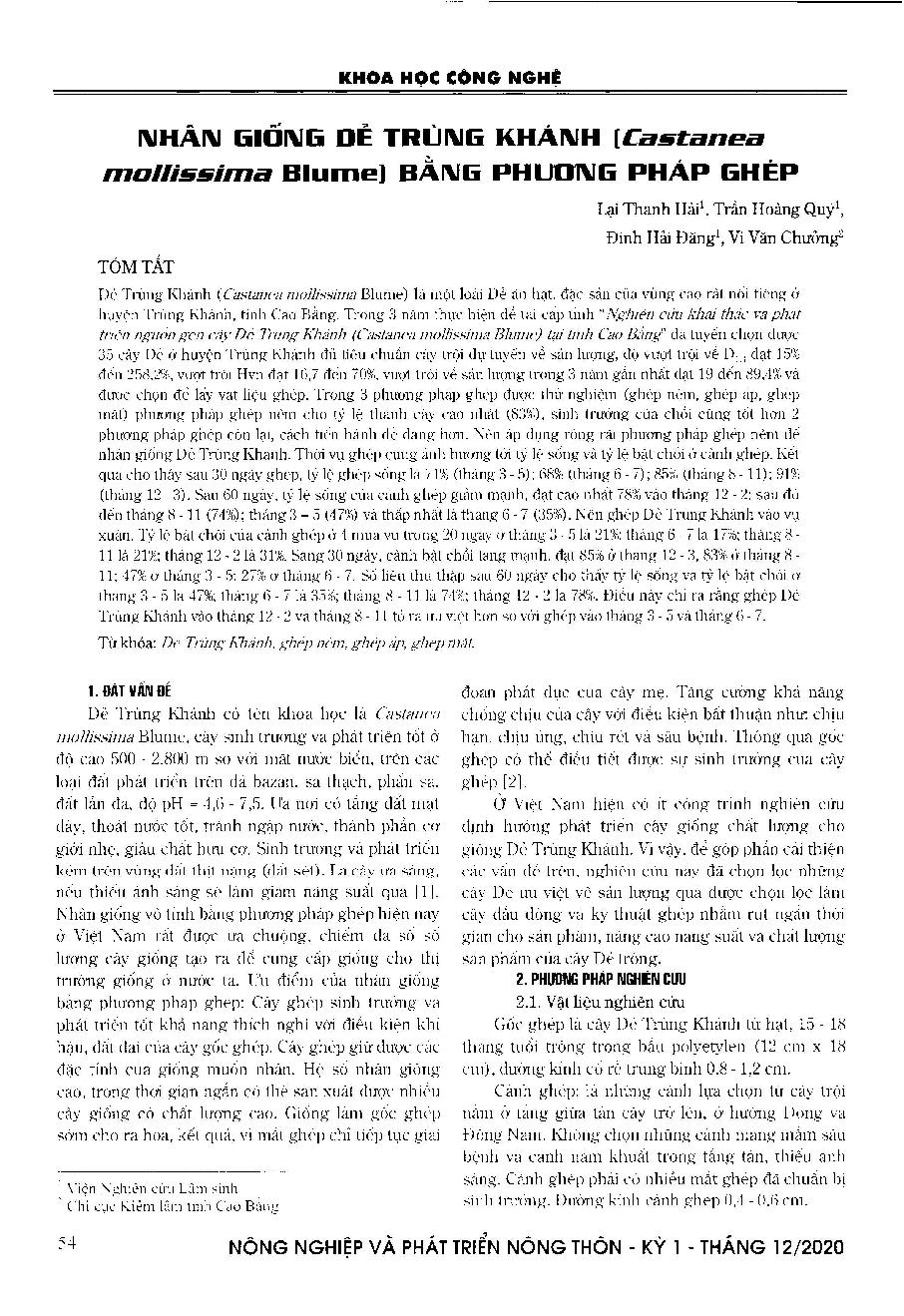 Nhân giống Dẻ Trùng Khánh (Castanea mollissima Blume) bằng phương pháp ghép = Castanea mollissima Blume propagation by grafting
