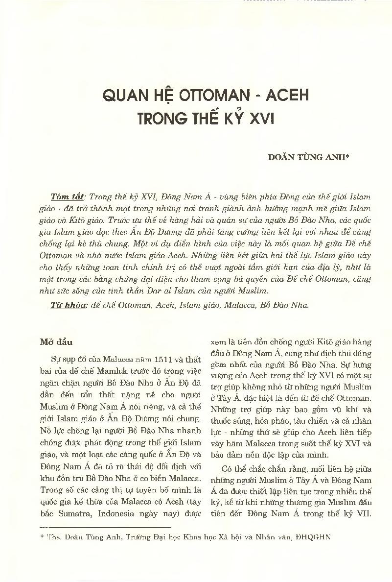 Quan hệ OTTOMAN - ACEH trong thế kỷ XVI = Ottoman - Aceh Relation in the Sixteenth Century