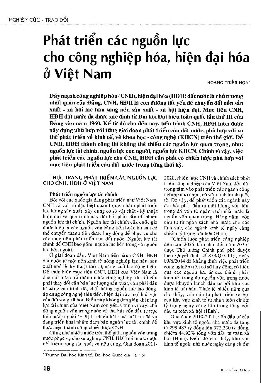 Phát triển các nguồn lực cho công nghiệp hóa, hiện đại hóa ở Việt Nam