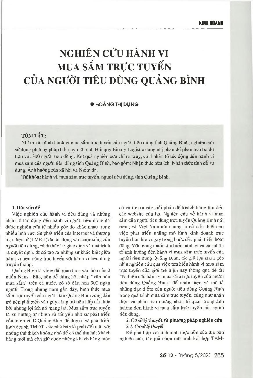 Nghiên cứu hành vi mua sắm trực tuyến của người tiêu dùng Quảng Bình = A study on the online shopping behavior of consumers in Quang Binh province