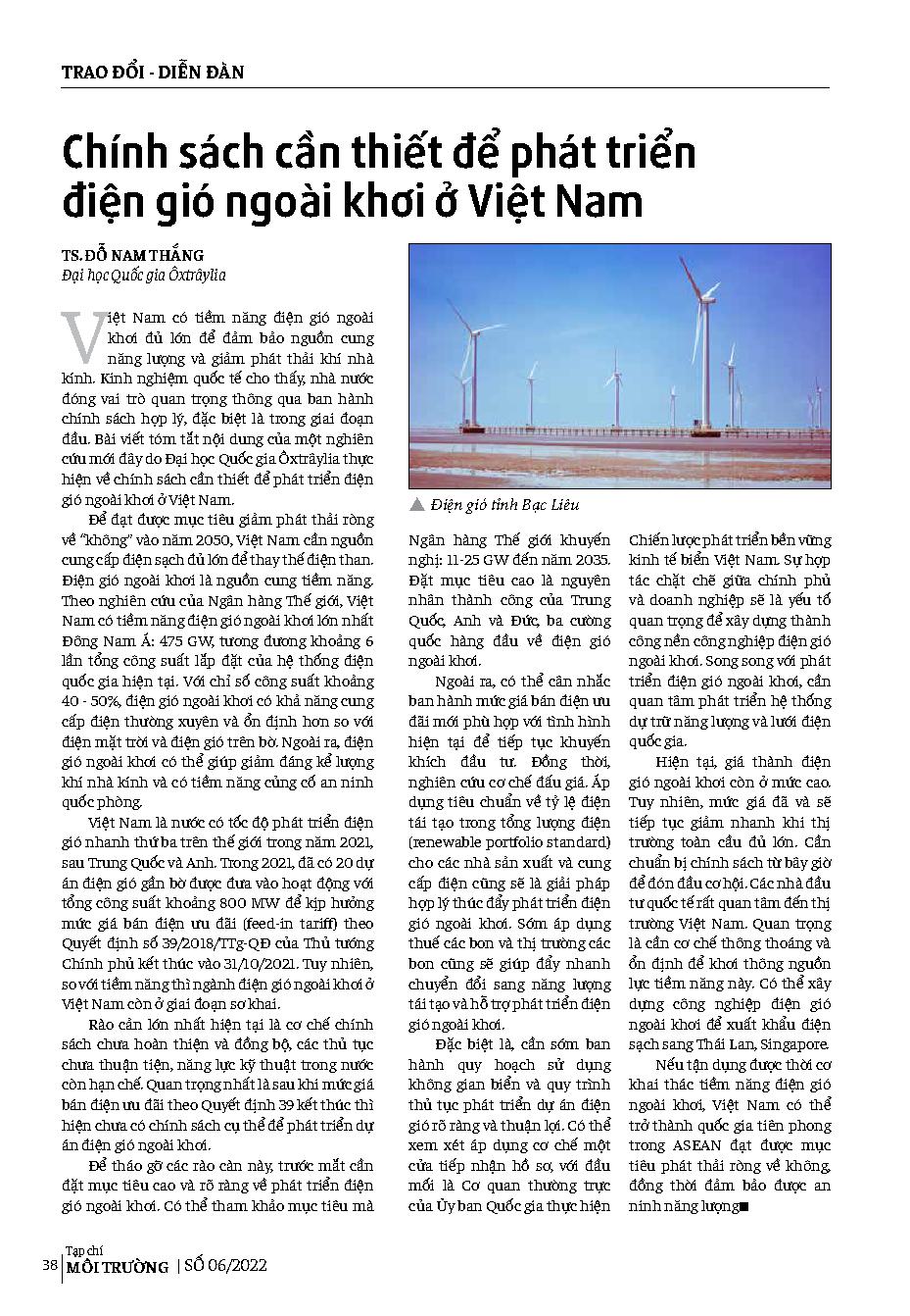 Chính sách cần thiết để phát triển điện gió ngoài khơi ở Việt Nam