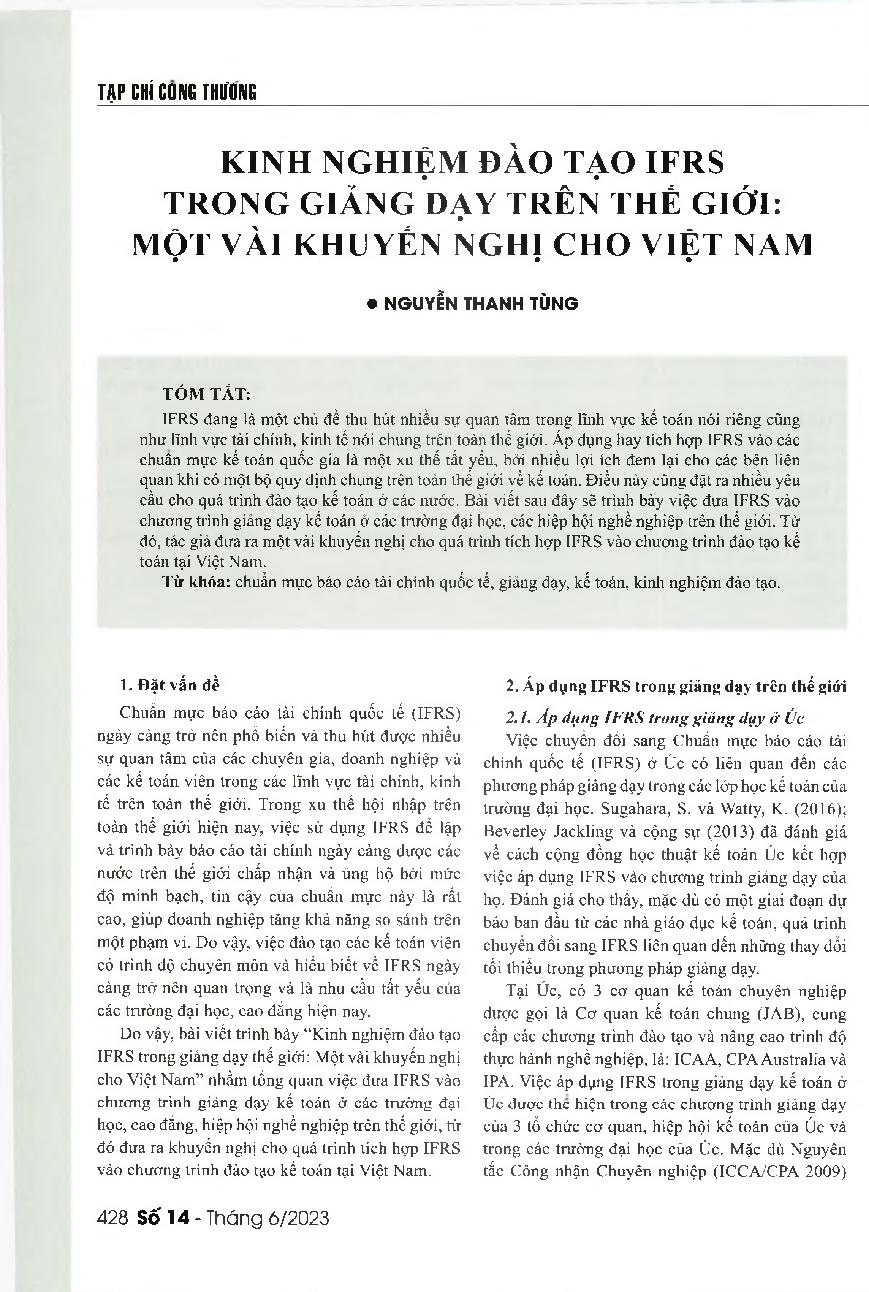 Kinh nghiệm đào tạo IFRS trong giảng dạy trên thế giới: Một vài khuyến nghị cho Việt Nam