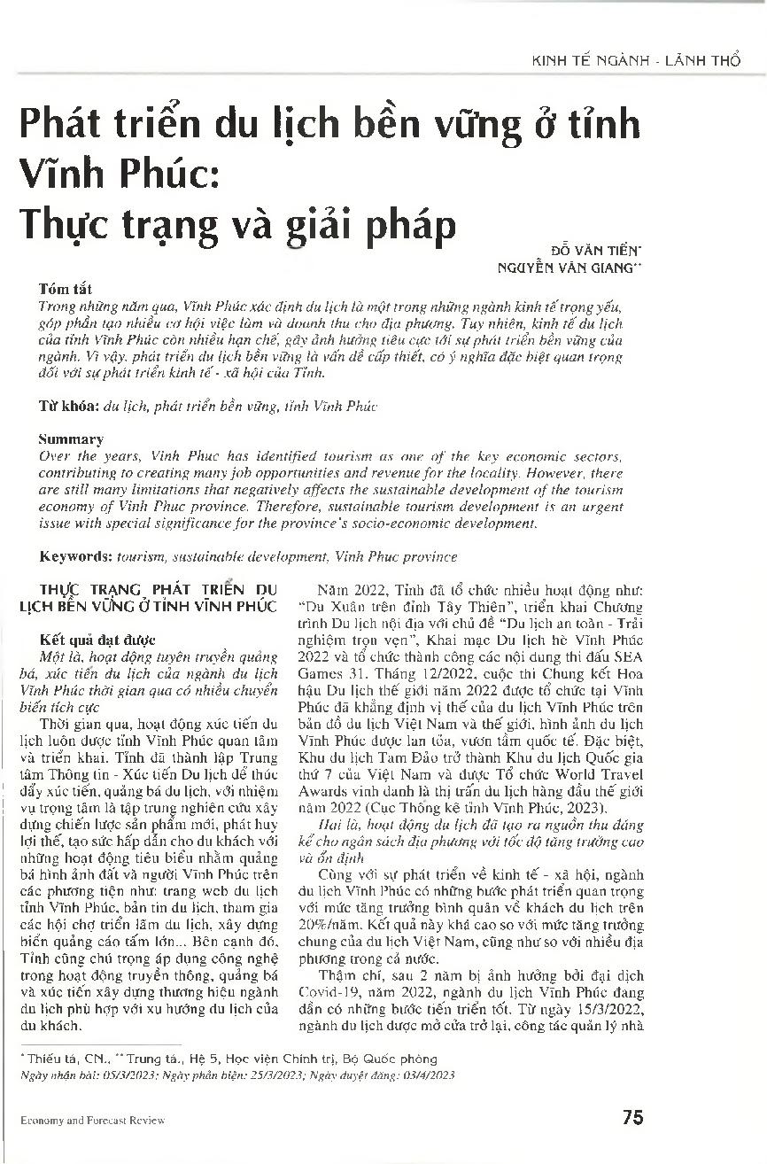 Phát triển du lịch bền vững ở tỉnh Vĩnh Phúc: Thực trạng và giải pháp