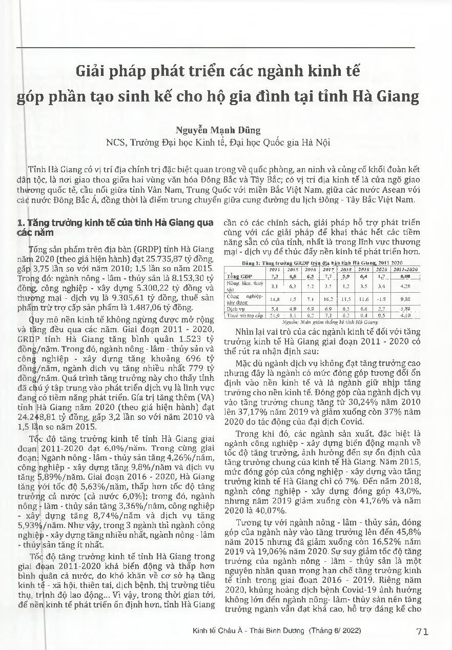 Giải pháp phát triển các ngành kinh tế góp phần tạo sinh kế cho hộ gia đình tại tỉnh Hà Giang