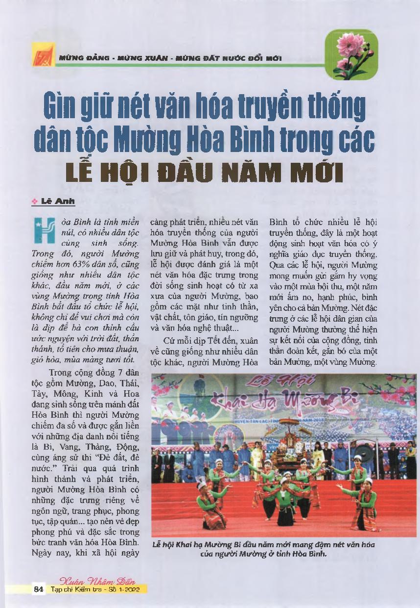 Gìn giữ nét văn hóa truyền thống dân tộc Mường Hòa Bình trong các lễ hội đầu năm mới