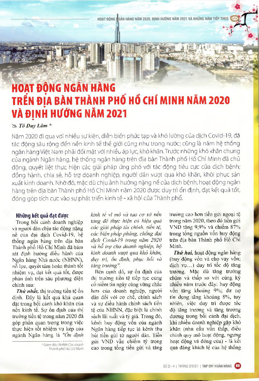 Hoạt động ngân hàng trên địa bàn Thành phố Hồ Chí Minh năm 2020 và định hướng năm 2021
