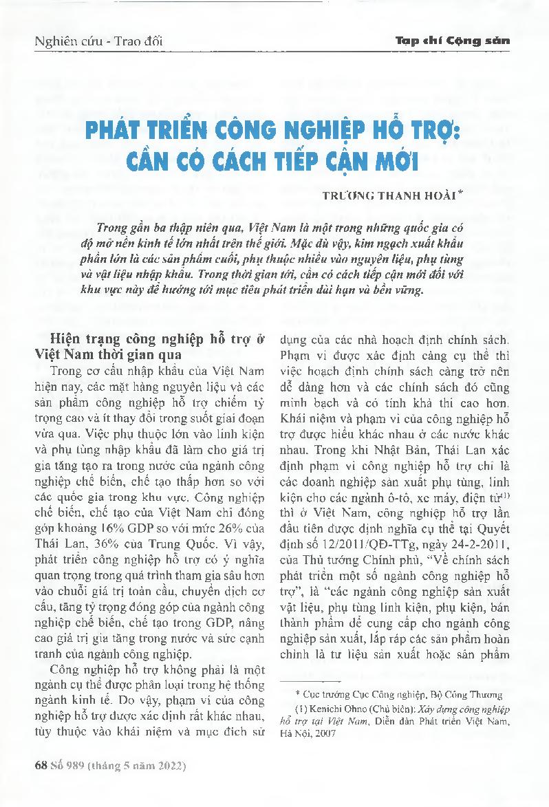Phát triển công nghiệp hỗ trợ: Cần có cách tiếp cận mới = Supporting industry development: A new approach is needed