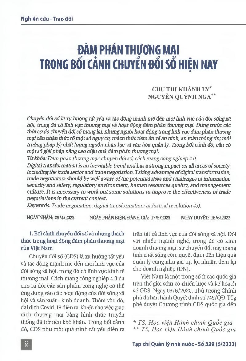 Đàm phán thương mại trong bối cảnh chuyển đổi số hiện nay = Trade negotiations in the current context of digital transformation