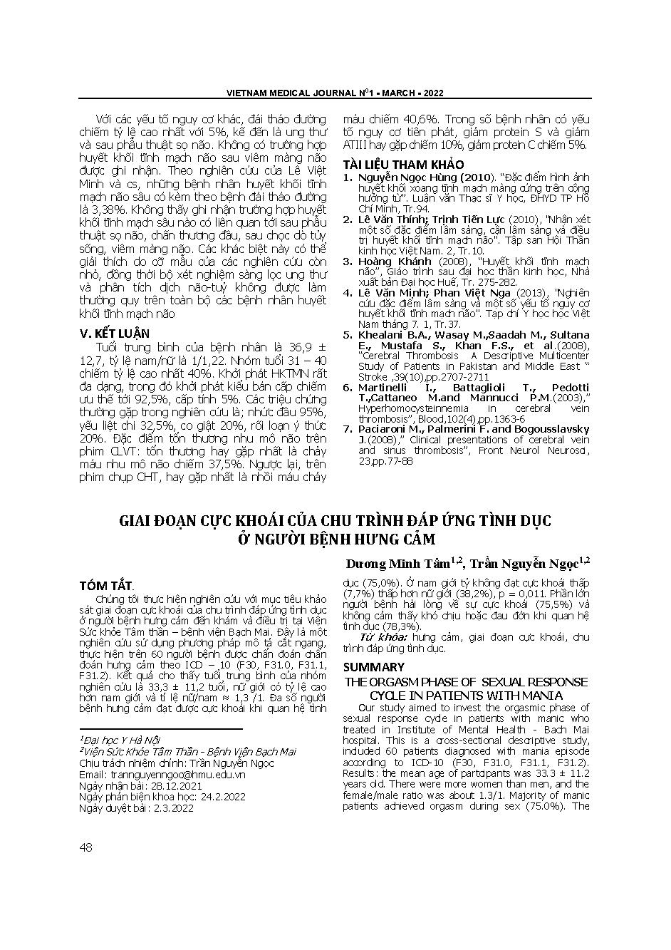 Giai đoạn cực khoái của chu trình đáp ứng tình dục ở người bệnh hưng cảm = The orgasm phase of sexual response cycle in patients with mania