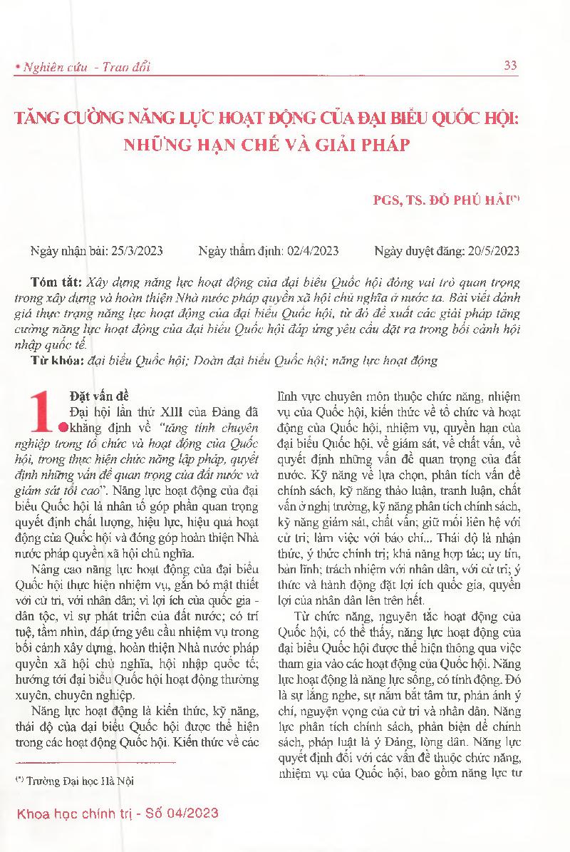 Tăng cường năng lực hoạt động của đại biểu Quốc hội: Những hạn chế và giải pháp