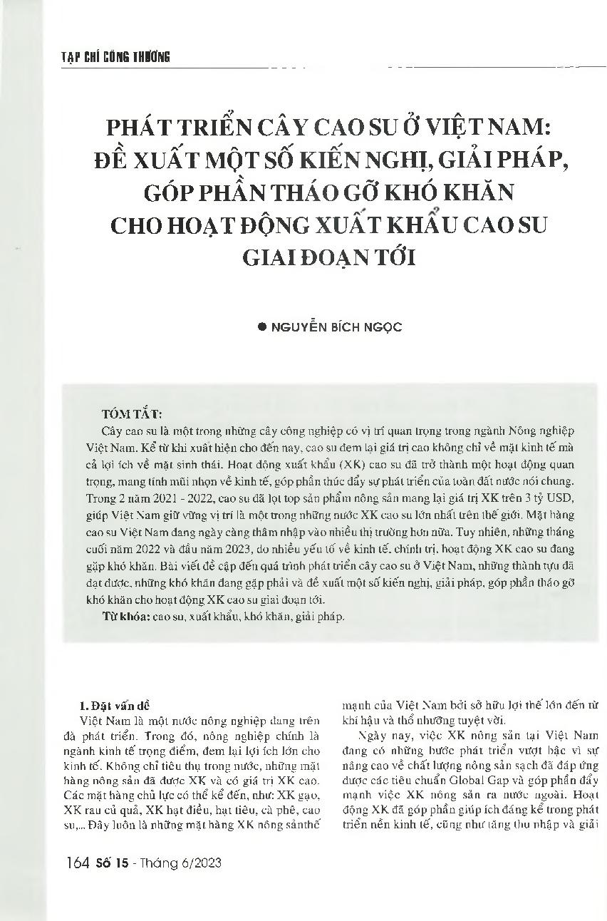 Phát triển cây cao su ở Việt Nam: Đề xuất một số kiến nghị, giải pháp, góp phần tháo gỡ khó khăn cho hoạt động xuất khẩu cao su giai đoạn tới