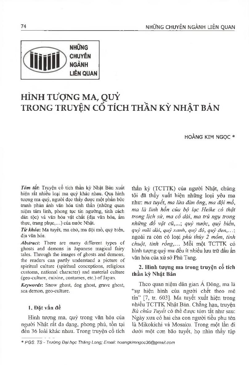 Hình tượng ma, quỷ trong truyện cổ tích thần kỳ Nhật Bản = The images of ghosts, demons in Japanese magical fairy tales
