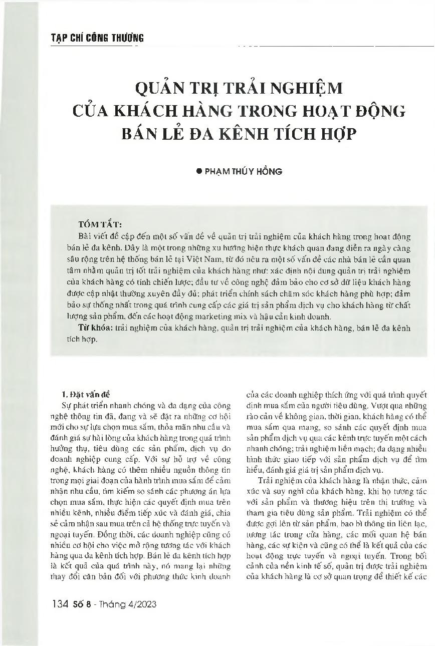 Quản trị trải nghiệm của khách hàng trong hoạt động bán lẻ đa kênh tích hợp