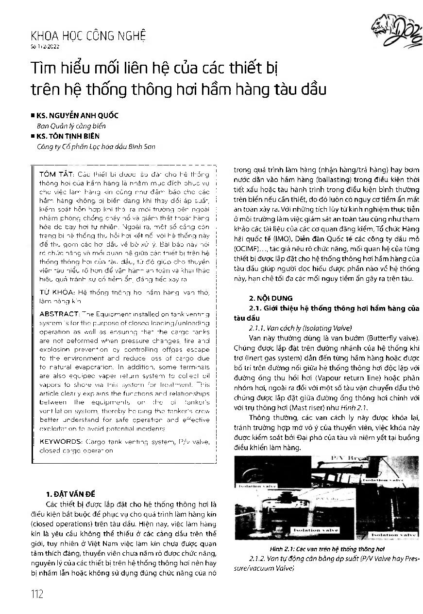 Tìm hiểu mối liên hệ của các thiết bị trên hệ thống thông hơi hầm hàng tàu dầu = Investigation into the relationship between devices of the cargo tank ventilating system of oil tankers