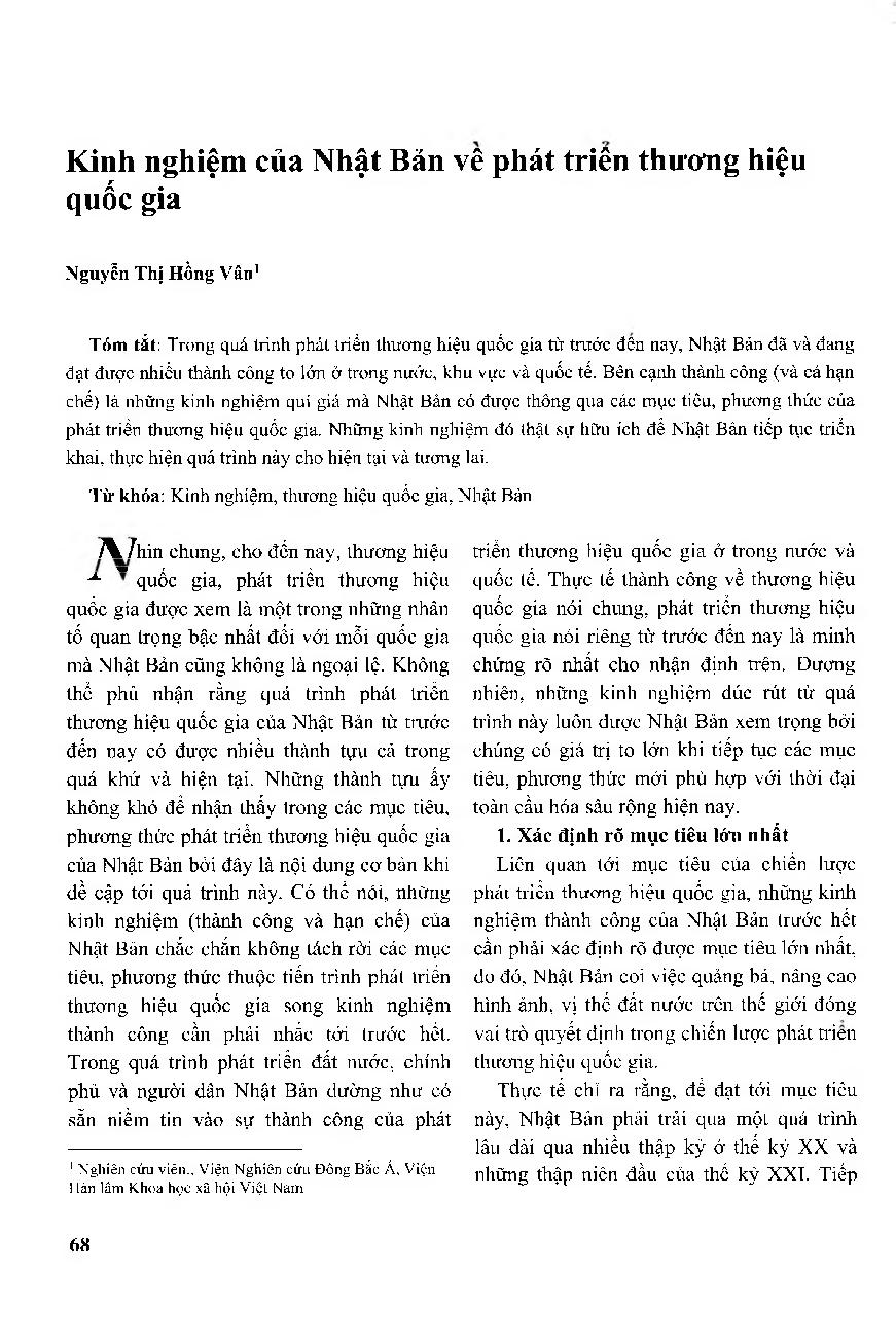 Kinh nghiệm của Nhật Bản về phát triển thương hiệu quốc gia = Japan&; 39;s Experience in National Brand Development