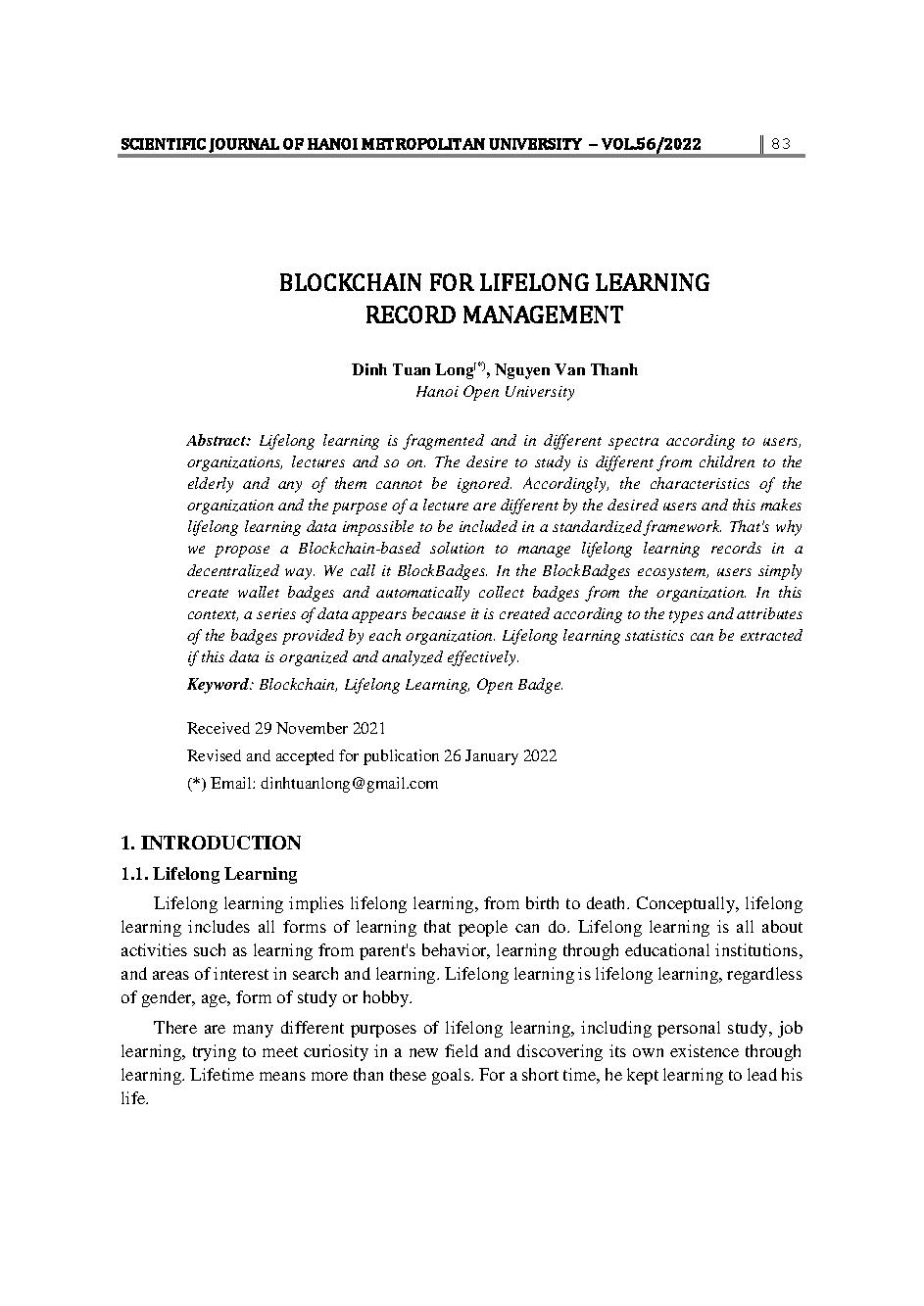 Ứng dụng blockchain quản lý hồ sơ học tập trong học tập suốt đời = Blockchain for lifelong learning record management
