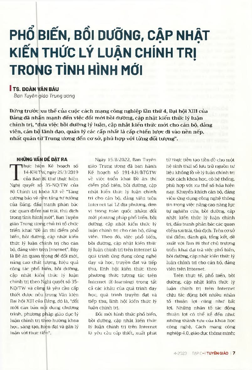 Phổ biến, bồi dưỡng, cập nhật kiến thức lý luận chính trị trong tình hình mới