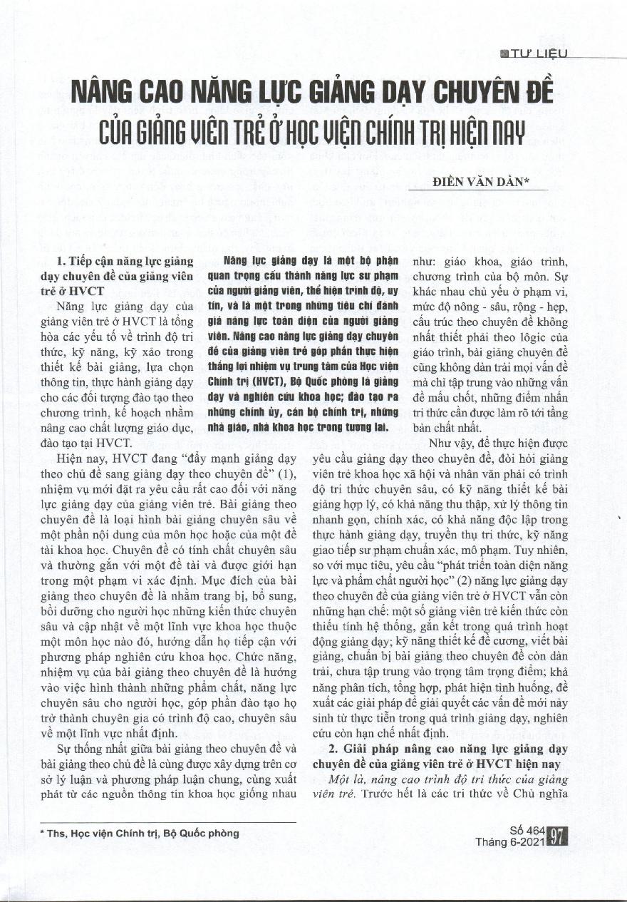 Nâng cao năng lực giảng dạy chuyên đề của giảng viên trẻ ở Học viện Chính trị hiện nay