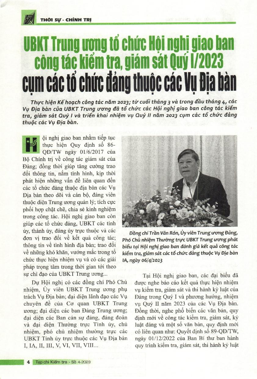 UBKT Trung ương tổ chức Hội nghị giao ban công tác kiểm tra, giám sát Quý I/2023 Cụm các tổ chức đảng thuộc các Vụ Địa bàn