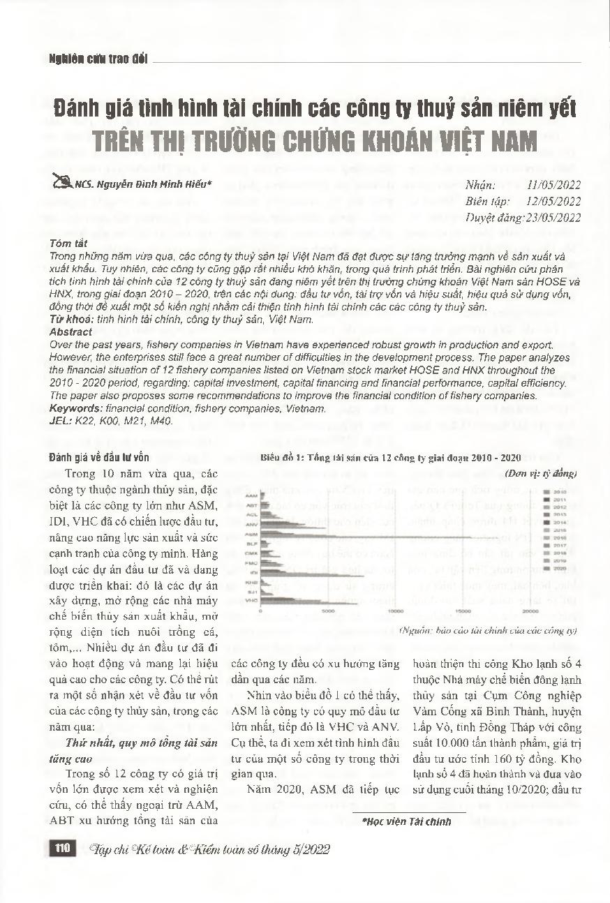 Đánh giá tình hình tài chính các công ty thuỷ sản niêm yết trên thị trường chứng khoán Việt Nam = Assessment of the financial condition of fishery companies listed on the stock market of Vietnam