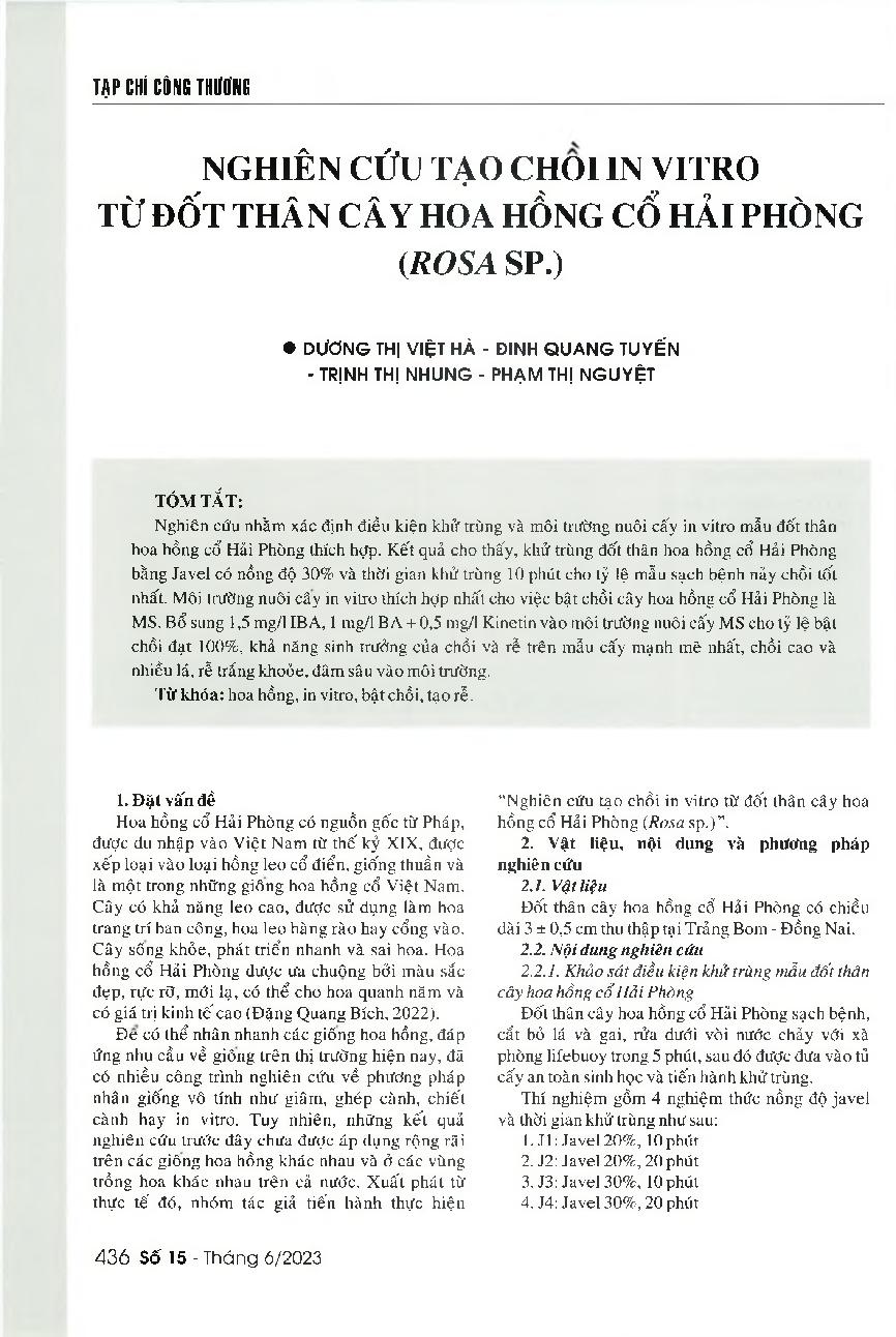 Nghiên cứu tạo chồi in vitro từ đốt thân cây hoa hồng cổ Hải Phòng (Rosa sp.)