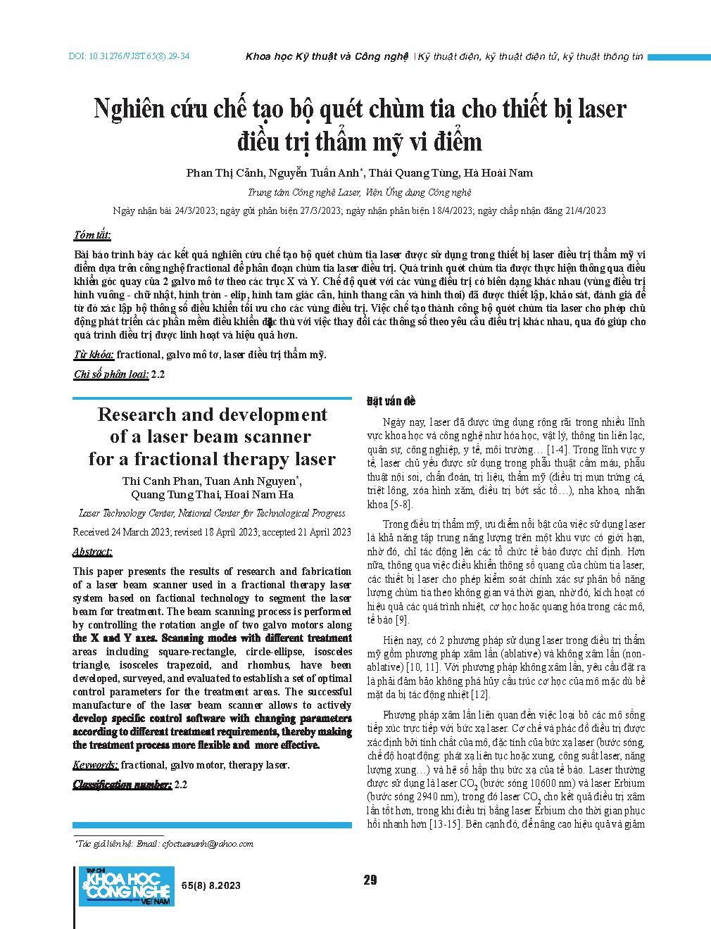 Nghiên cứu chế tạo bộ quét chùm tia cho thiết bị laser điều trị thẩm mỹ vi điểm = Research and development of a laser beam scanner for a fractional therapy laser