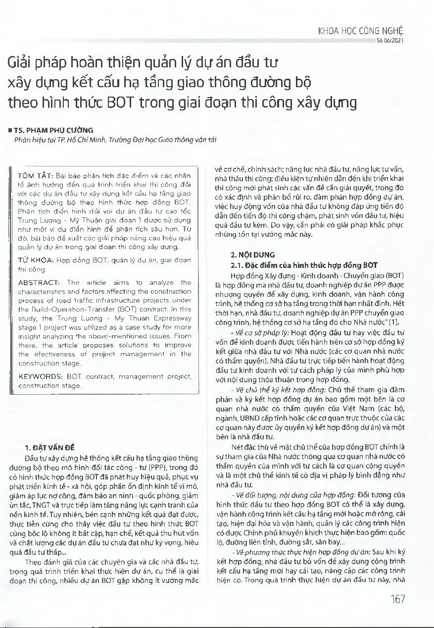 Giải pháp hoàn thiện quản lý dự án đầu tư xây dựng kết cấu hạ tầng giao thông đường bộ theo hình thức BOT trong giai đoạn thi công xây dựng