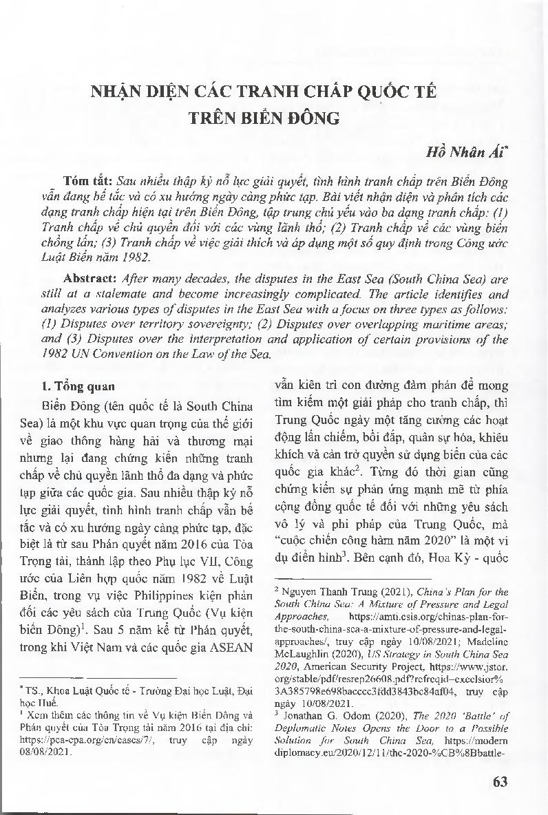 Nhận diện các tranh chấp quốc tế trên Biển Đông = Identifying International Disputes in the East Sea