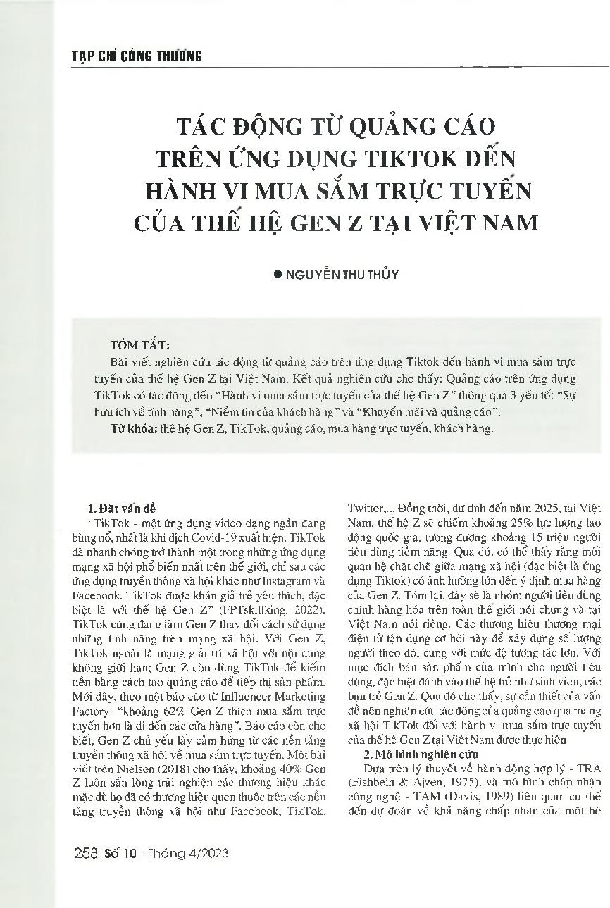 Tác động từ quảng cáo trên ứng dụng TikTok đến hành vi mua sắm trực tuyến của thế hệ GEN Z tại Việt Nam