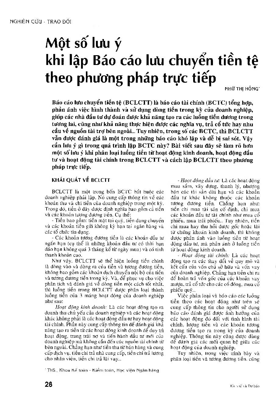 Một số lưu ý khi lập báo cáo lưu chuyển tiền tệ theo phương pháp trực tiếp