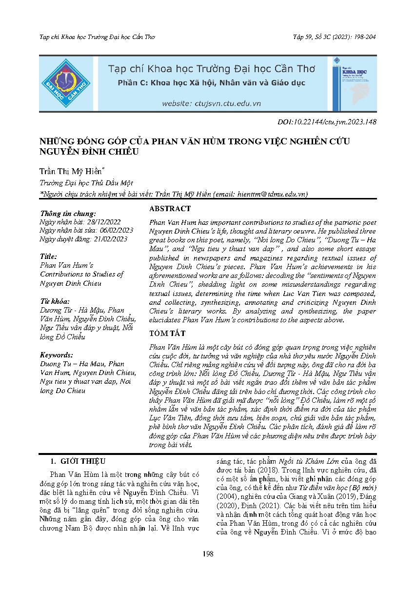 Những đóng góp của Phan Văn Hùm trong việc nghiên cứu Nguyễn Đình Chiểu = Phan Van Hum's Contributions to Studies of Nguyen Dinh Chieu
