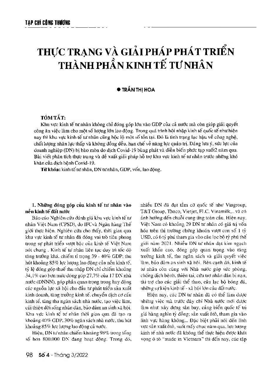 Thực trạng và giải pháp phát triển thành phần kinh tế tư nhân = Current situation and solutions to support the growth of the private sector