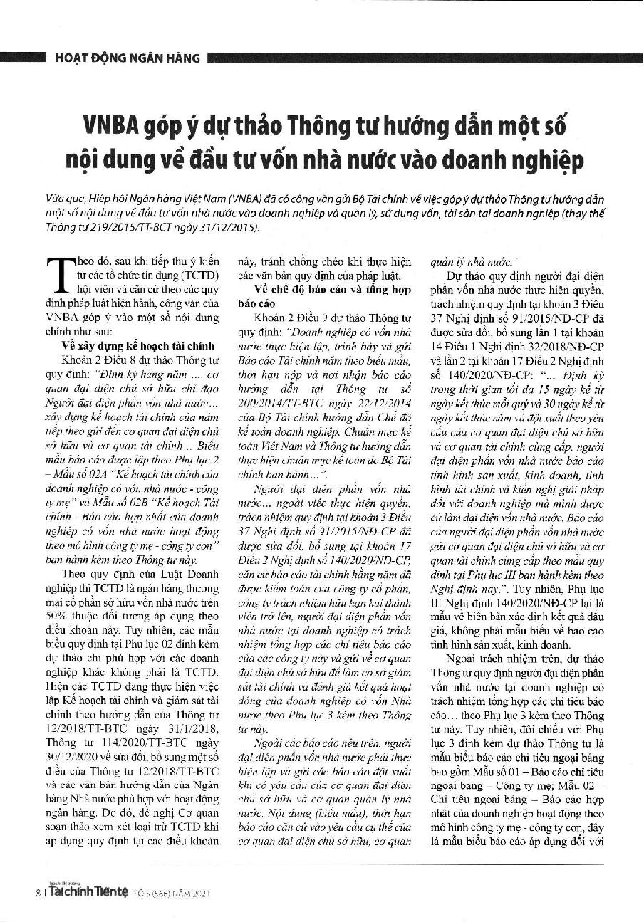 VNBA góp ý dự thảo Thông tư hướng dẫn một số nội dung về đầu tư vốn nhà nước vào doanh nghiệp